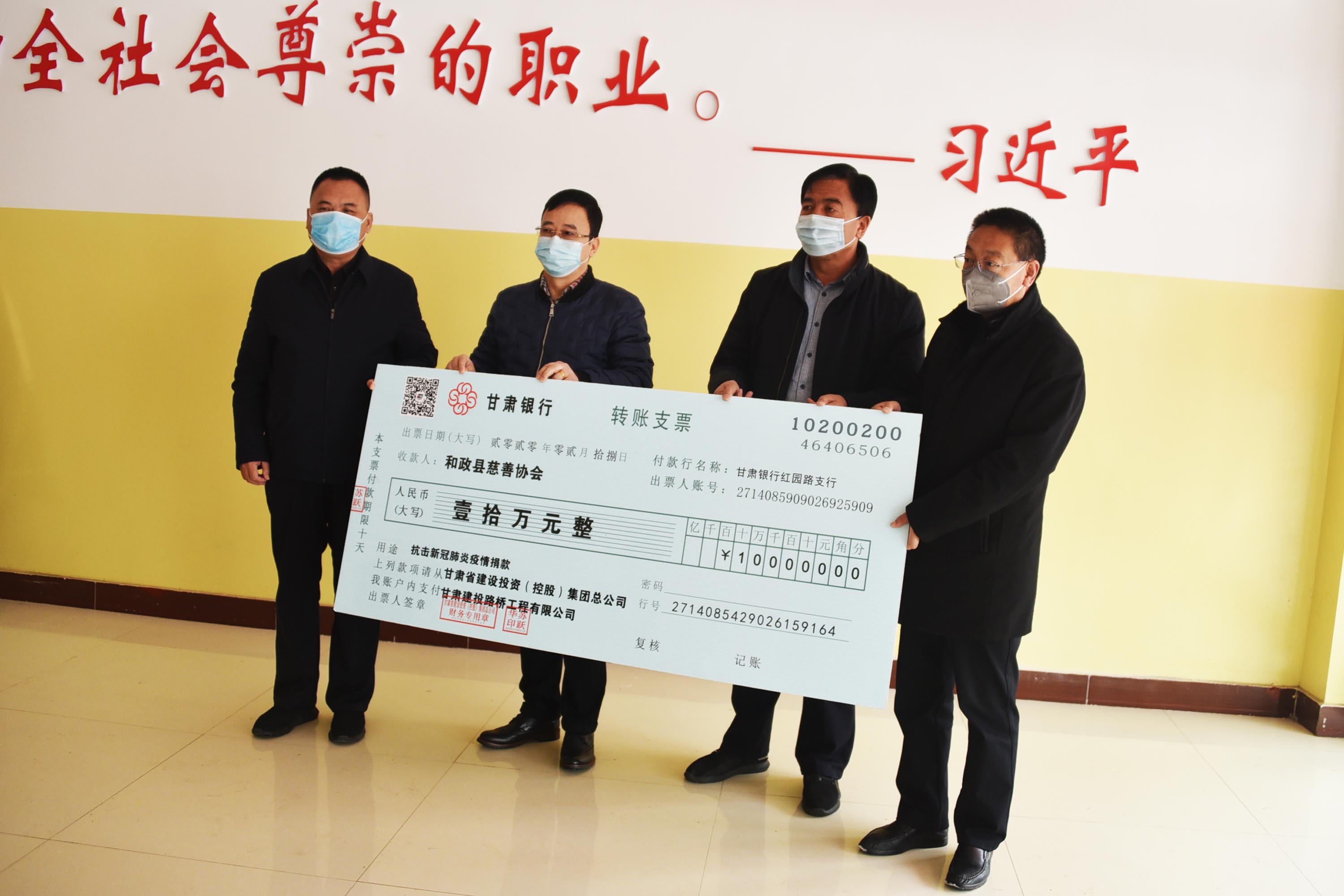 眾志成城 抗擊疫情 甘肅建投路橋公司向和政縣捐款10萬元!