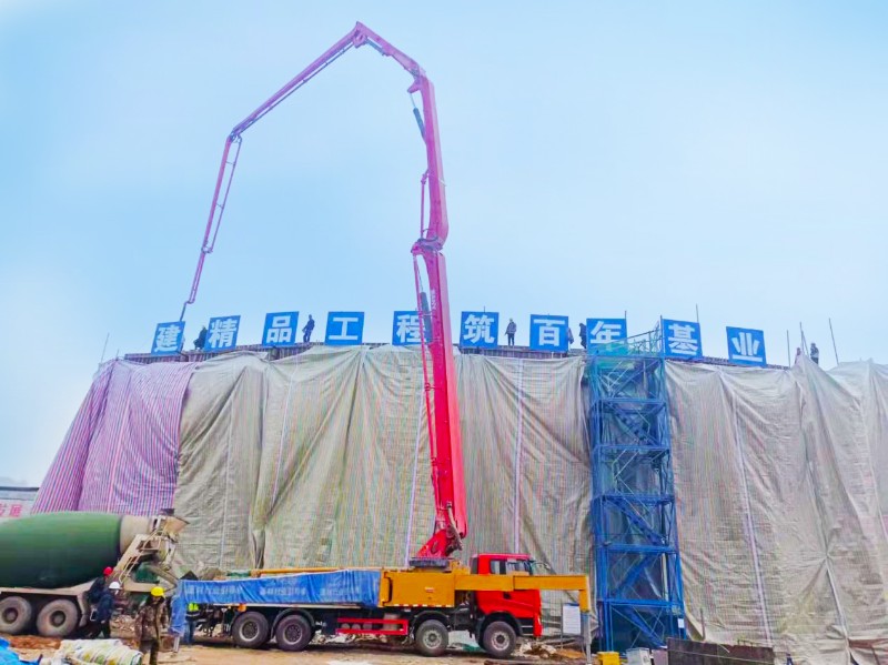 在施工現(xiàn)場,多臺大型機械同時運轉(zhuǎn),作業(yè)人員配合默契,工程建設如火如荼,混凝土隨著輸送泵的節(jié)奏徐徐上升入模開始澆筑?,F(xiàn)澆段長度達145米,高13米到15米,寬24米到32米,現(xiàn)澆連續(xù)箱梁澆筑C50混凝土3486方,本次澆筑1500方。