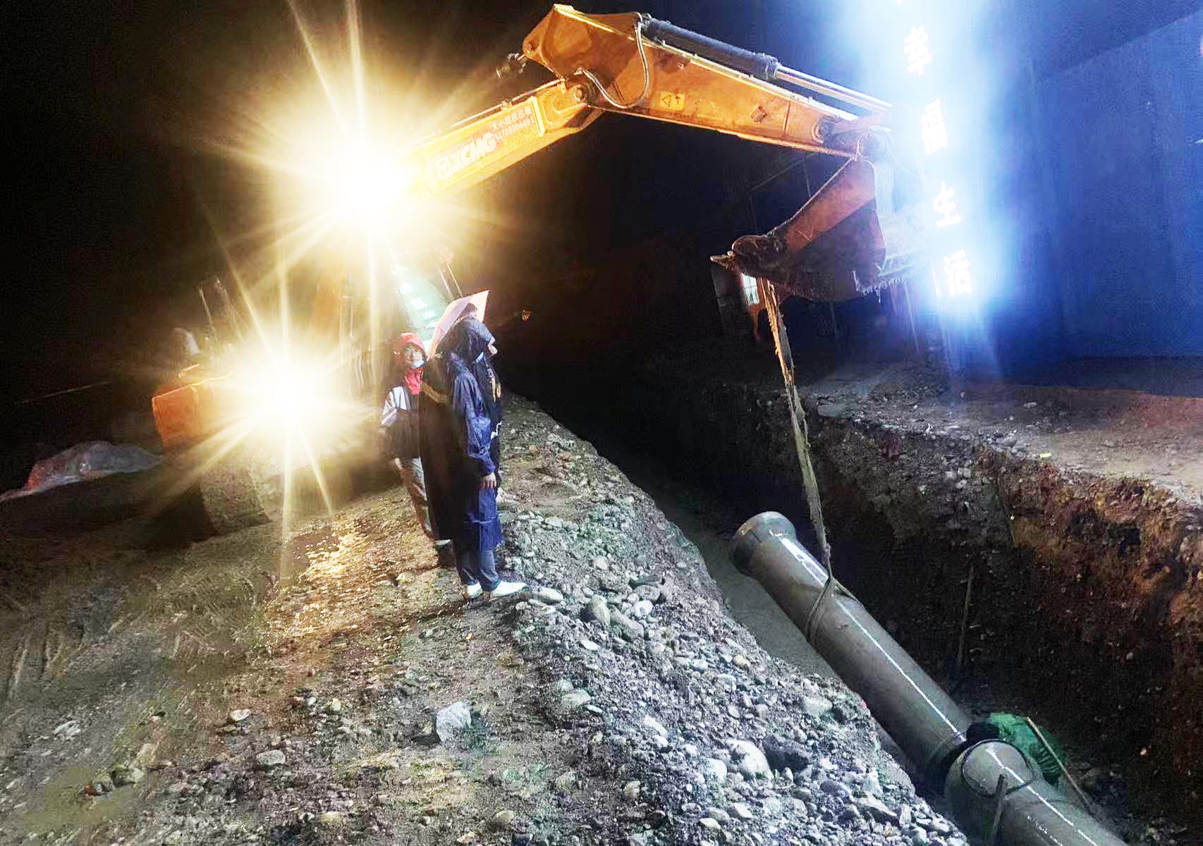 項(xiàng)目部全體人員不辜負(fù)每一份信任,迎難而上、連夜冒雨奮戰(zhàn),化壓力為動力,爭分奪秒搶工期,加班加點(diǎn)趕進(jìn)度。于7月22日下午6點(diǎn)順利完成醫(yī)養(yǎng)中心雨污水管道與市政管網(wǎng)的銜接,并于次日投入使用。