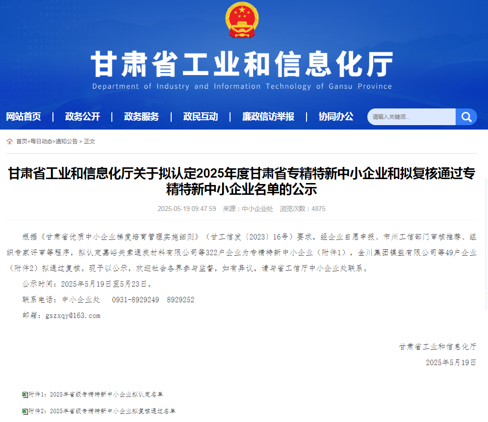 近日,甘肅省工業(yè)和信息化廳公布了2025年度“專(zhuān)精特新”中小企業(yè)認(rèn)定名單,甘肅建投新能源科技股份有限公司憑借在新能源領(lǐng)域的卓越表現(xiàn)和創(chuàng)新能力,成功獲評(píng)甘肅省“專(zhuān)精特新”優(yōu)勢(shì)企業(yè),這不僅是對(duì)公司過(guò)往成績(jī)的高度認(rèn)可,也為未來(lái)發(fā)展注入了強(qiáng)大動(dòng)力。