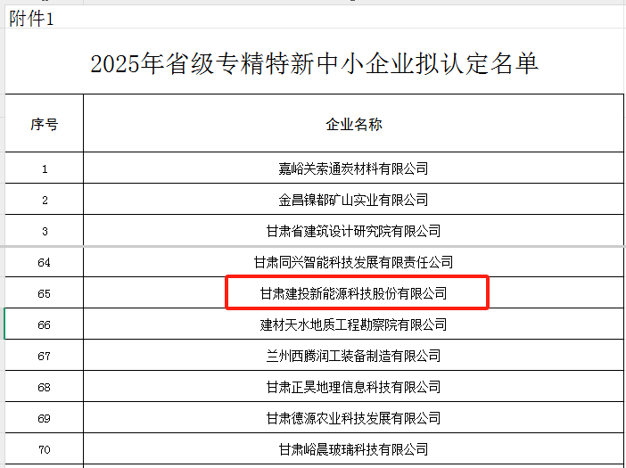 喜報(bào)!甘肅建投新能源科技股份有限公司獲評(píng)2025年度甘肅省“專(zhuān)精特新”企業(yè)稱(chēng)號(hào)