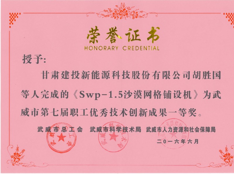 Swp-1.5沙漠網(wǎng)格鋪設(shè)機(jī)-武威市第七屆職工優(yōu)秀技術(shù)創(chuàng)新成果一等獎(jiǎng)