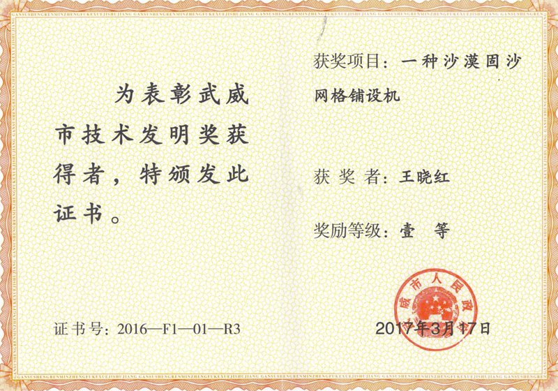 一種沙漠固沙網(wǎng)格鋪設(shè)機-獲獎?wù)撸和鯐约t