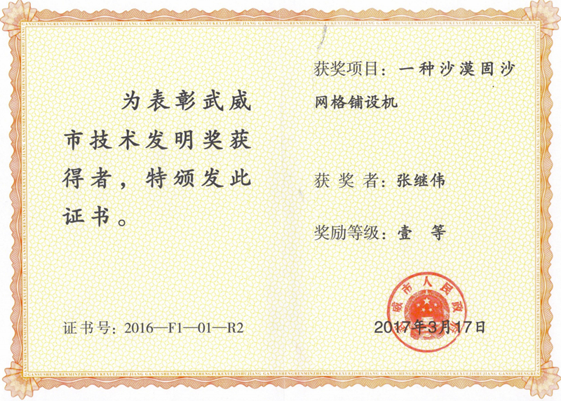 一種沙漠固沙網格鋪設機-獲獎者:張繼偉