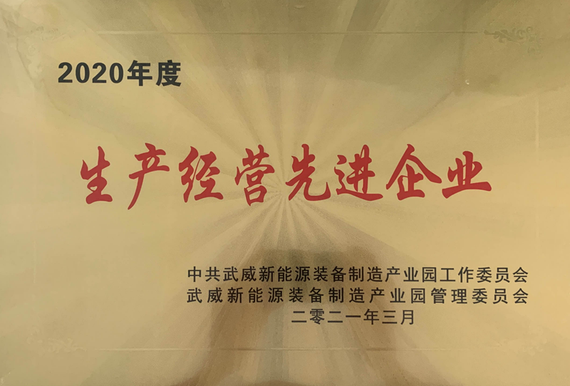 2020年度武威市新能源裝備產(chǎn)業(yè)園生產(chǎn)經(jīng)營先進(jìn)企業(yè)