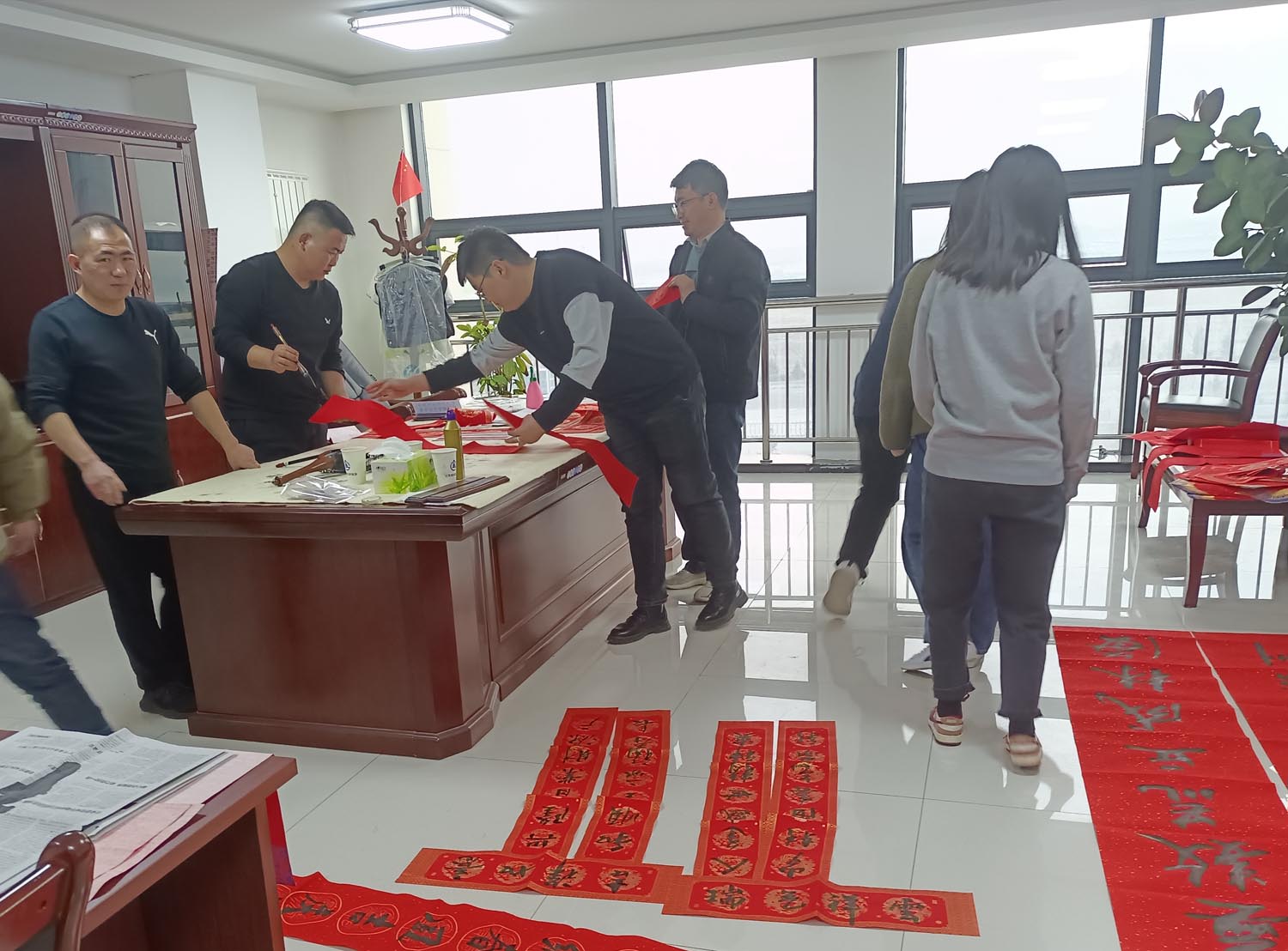 為深入學(xué)習(xí)宣傳貫徹黨的二十大精神,大力弘揚中華優(yōu)秀傳統(tǒng)文化,豐富職工群眾精神文化生活,營造隆重喜慶、歡樂祥和的節(jié)日氛圍。根據(jù)中華全國總工會的《關(guān)于在元旦春節(jié)期間開展“送萬?!薄ⅰ斑M(jìn)萬家”書法公益活動的通知》要求,1月11日下午,新能源公司組織開展送春聯(lián)贈福字書法志愿服務(wù)活動,將節(jié)日的祝福與年味提前送到職工群眾身邊。